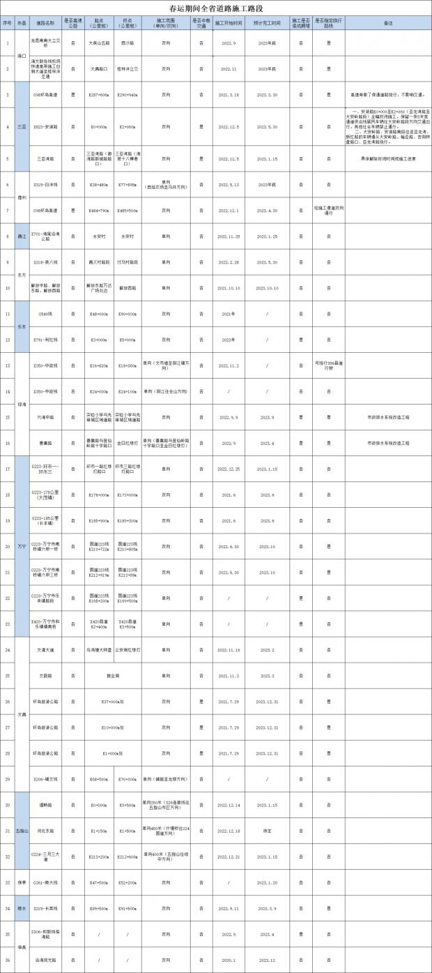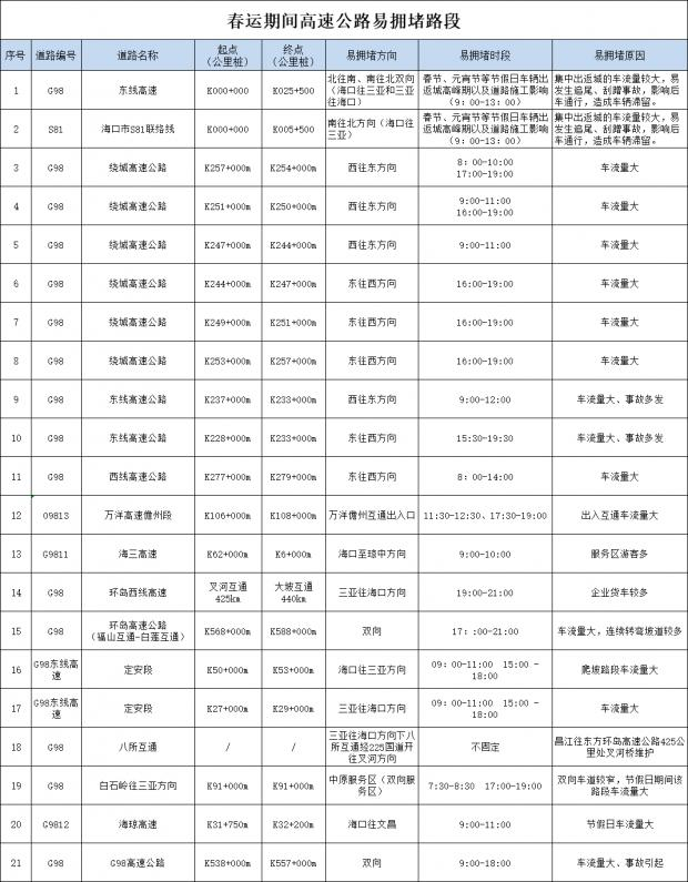 春运期间 海南高速公路易拥堵路段和施工路段有这些→