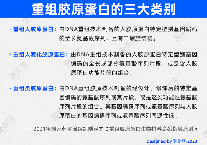 重组胶原蛋白是一类具有更好生物相容性的原料,能够克服动物源胶原蛋白的病毒风险和免疫原性风险。目前,市面上重组胶原蛋白产品的宣称各不相同,有的宣称“100%人源胶原蛋白”,有的是“全人源胶原蛋白”,有的是“人源化胶原蛋白”。不同宣称的背后,是基于不同类型胶原蛋白基因序列和结构而引发的技术博弈。