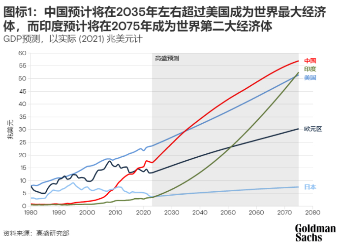 史上最远预测,高盛给出52年后全球经济排名:2035年中国超美国世界第一,2075年印度跃升世界第二