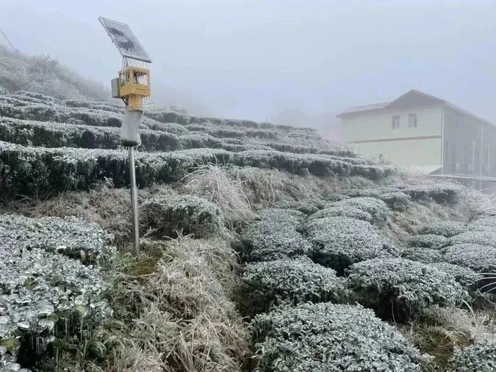 2月春雪后,海拔600余米的永春佛手茶茶园出现罕见雾凇