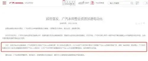 其实早在2022年4月8日,广汽本田及广汽讴歌在其官网发布通知宣布,为进一步促进电动化战略落地,合资公司广汽讴歌资源将整合进入广汽本田,加入到电动化事业中。