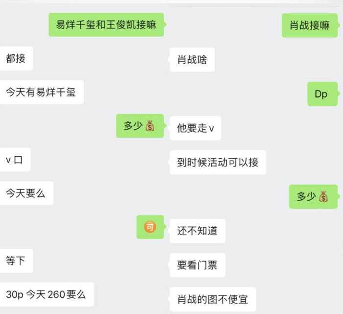 记者深入了解后得知,想了解明星出行的具体的航班信息,最低5元便可以买到,而身份证等信息则相对贵一些,价格在30元左右,例如蔡徐坤、朱一龙、易烊千玺等顶流艺人身份证信息单价定在50元。而这仅仅是单个身份证的价格,如若需要手机号、微信号、航班信息、酒店信息等隐私,则打包出售下来需要上百元。