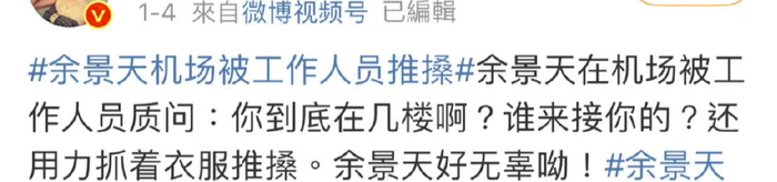 从视频现场画面来看,艺人余景天被粉丝团团围住拍照,行动缓慢,其他旅客也催促该艺人及粉丝让出通道。