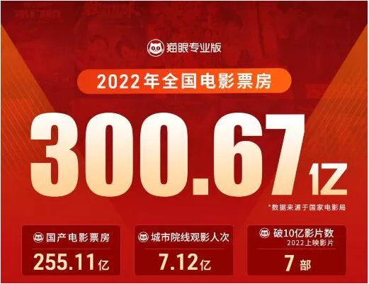 2022年中国电影票房300.67亿收官!成都位居城市票房榜第5