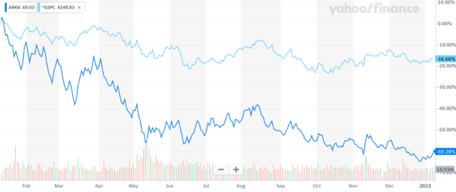 2022年对“木头姐”(Cathie Wood)来说无疑是难熬的,其方舟基金Ark Investment Management旗下的九只交易所交易基金(ETF)已经损失近500亿美元资产 ,旗舰Ark Disruptive Innovation ETF(ARKK)今年总亏损接近67%,成为美国市场230多只活跃交易的多元化ETF中跌幅最大的一个,超标普500跌幅3倍。