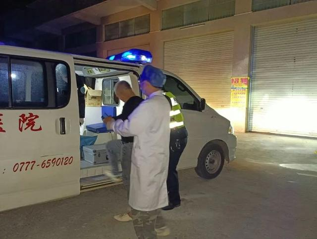 接报后,中队值班民辅警立即联系120,并赶往现场处理。民警赶到现场后,发现该男子是在卸货时,由于自己不小心,被一辆手推叉车压到了左脚,严重的是车上装载了大约两吨多的货物。