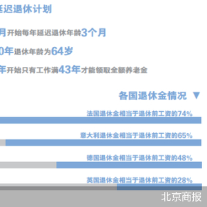 事实上,为了缓解养老金支出给政府财政带来的负担,不少国家早就先行一步,实施延迟退休政策。瑞典属于最早一批推出延迟退休年龄的欧洲国家,采取的是弹性退休制度,即瑞典人可选择在62岁至68岁间退休,如果愿意继续工作,则退休金额度会得到相应的提高。德国则自2012年起实施渐进式延迟退休,预计到2030年将退休年龄延长至67岁。