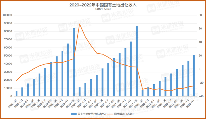 去年1-11月,国有土地使用权出让收入51174亿元,同比下降24.4%。机构预计整个2022年,土地收入将下降30%左右。