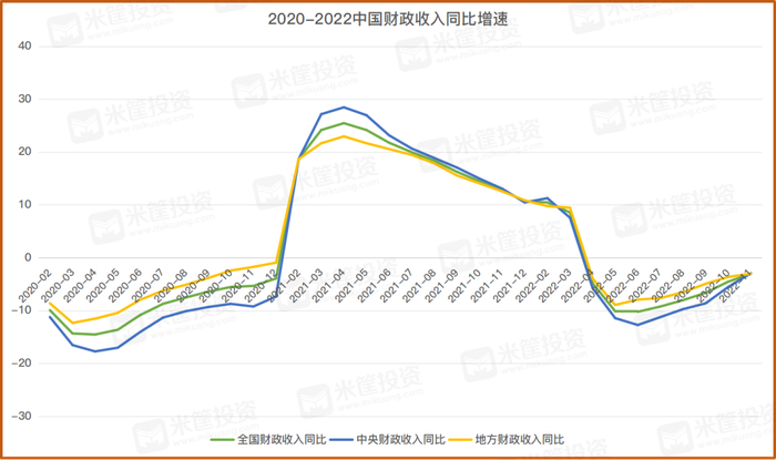 整个2020年、2022年,全部都是负增长。去年前11个月,全国财政收入下降3%,中央收入下降2.9%,地方收入下降3%。