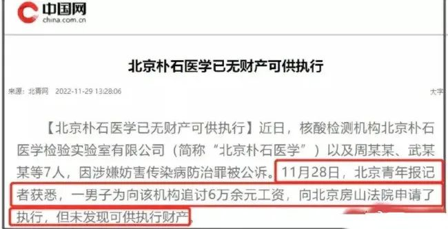 在去年北京疫情严重之时,朴石医学为贪图利益,未检测样本就出具阴性报告,给防疫带来巨大隐患和负担,最终被立案侦查。
