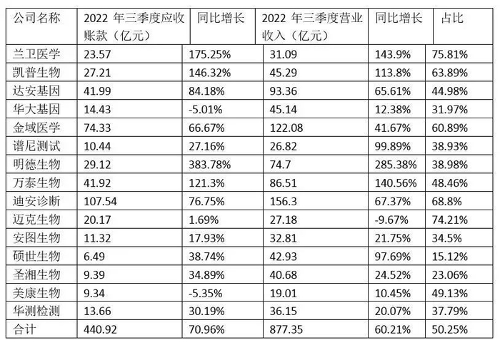 甚至,兰卫医学应收账款占营收超过75%,迈克生物占比74%,凯普生物、金域医学、迪安诊断的应收账款占比都超过了60%。