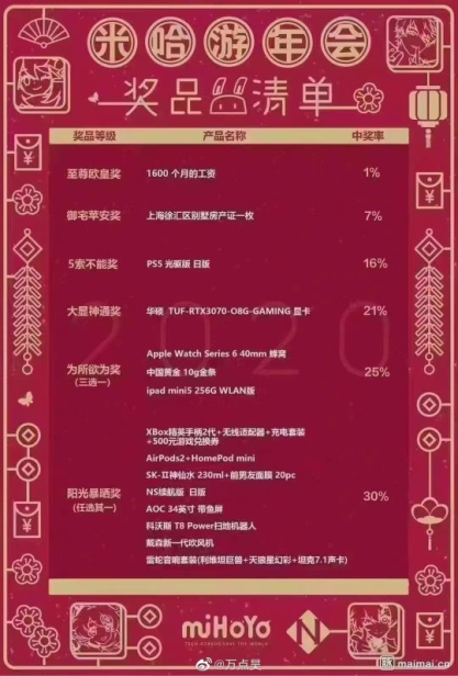 近年来,米哈游年终奖几乎每年都预订年末热搜,背后也折射出大众对于这家新锐公司的关注。尤其是今年公司旗下游戏《原神》在全球范围内收入持续增长,也让大众对于公司的收入浮想联翩。