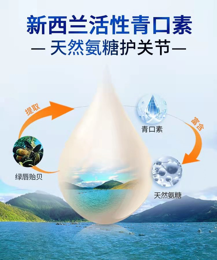 之所以它能解决这么多关节问题,全都是其核心成分“青口素”的功劳,提取自新西兰马尔堡峡湾的青口绿唇贻贝,那里水质清澈,远离污染,青口贝的品质特别高。