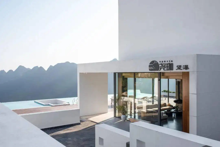 除了住进奇缘谷冰雪小镇,近距离感受梦幻雪国世界外,还可以前往体验打卡安顺关岭县的悬崖边上的尧珈民宿,这家民宿毗邻尧珈·凡舍,距离黄果树瀑布景区10公里,车程在14分钟左右。