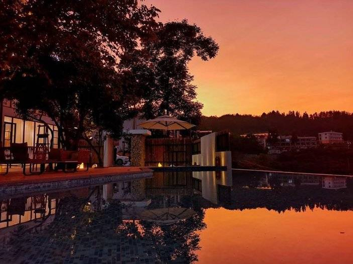奶白色的建筑外观在青山白云之间,尤为显眼。民宿最为惊艳的是半悬空的星光泳池,夜里灯光亮起,犹如星星落进泳池。青山绵延,白云缭绕的自然环境,是派对聚会、休闲摄影、静享舒适山居生活的不二之选。