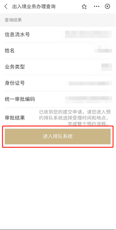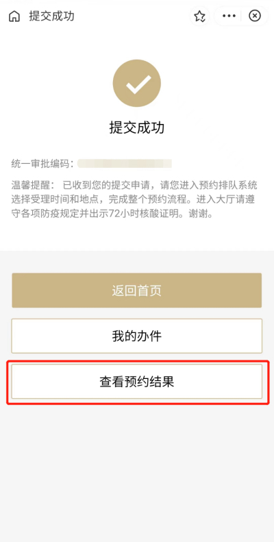 3、提交成功即进入预审阶段,可选择“查看预约结果”或在“出入境专栏”中选择“出入境业务办理查询”查询审核进度。