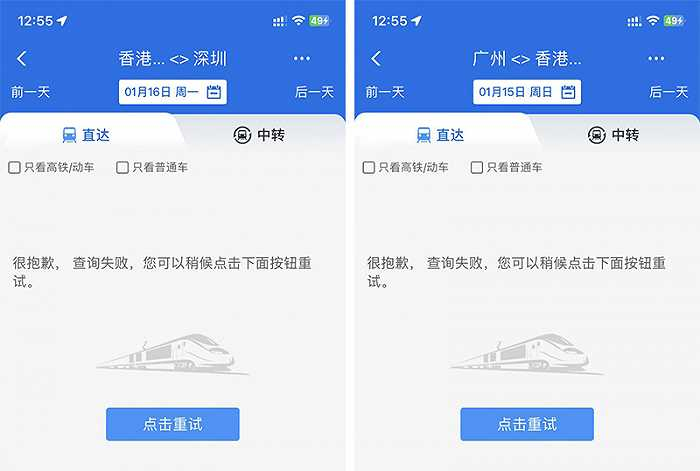 12306出现故障,部分用户无法购买广深港之间的高铁票
