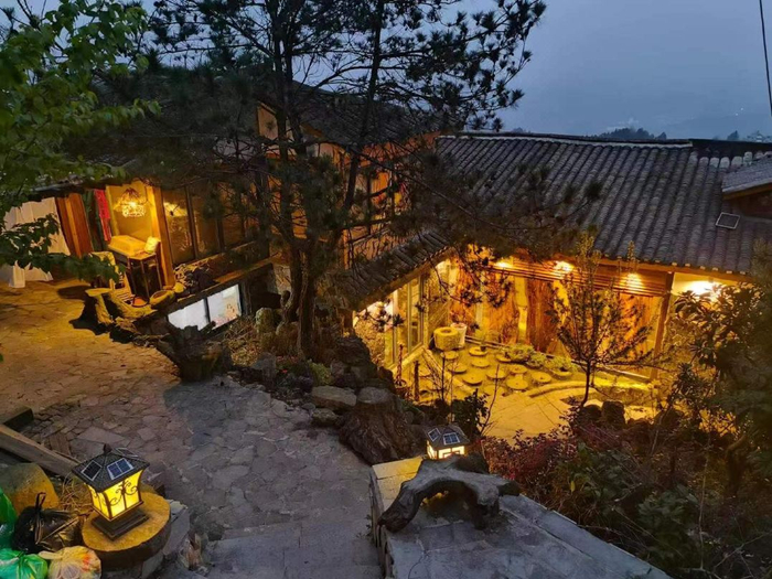 民宿门口是碎石铺成的小院,当落日映红了小院水池,一切便宛如进入画面,此时静下来,看看书,听听歌,眼前的景象大概是最无忧无虑的美好时光,亲切淡雅的外观让这里一切都有了家的温度。