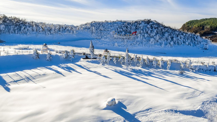 梅花山不仅有着世界最长观光索道依托,更是目前西南最大的滑雪场,占地91700平方米,全长1880米。其以“冰雪童话”为主题,立足为游客提供“山中滑雪,山上戏水,山下畅游”的独有乐趣。