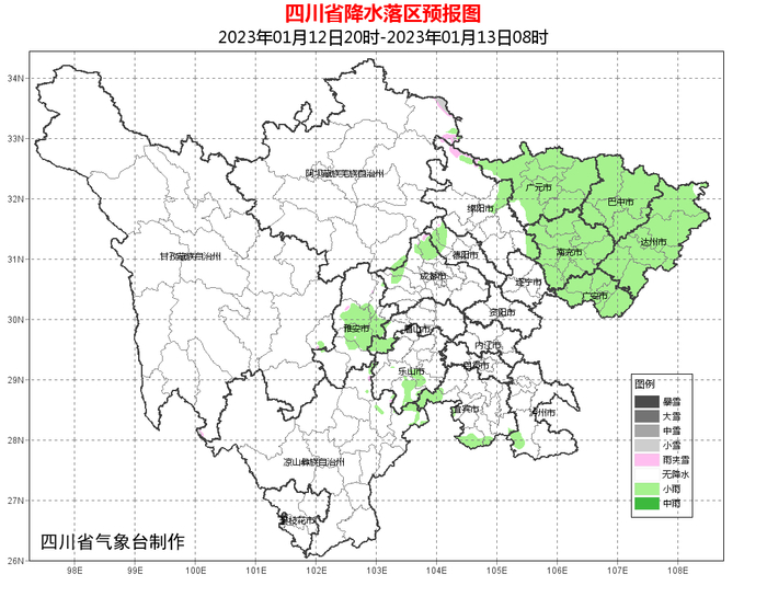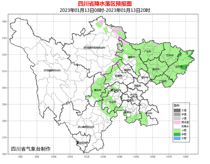 昨天08时到今天08时,盆地大部阴天,西南部、南部局部小雨;川西高原和攀西地区晴。