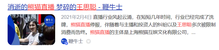 然而,随着乐视体育逐渐走向衰落、熊猫直播亏损连年走高等问题爆发,王思聪的普思资本遭受了巨额投资亏损。
