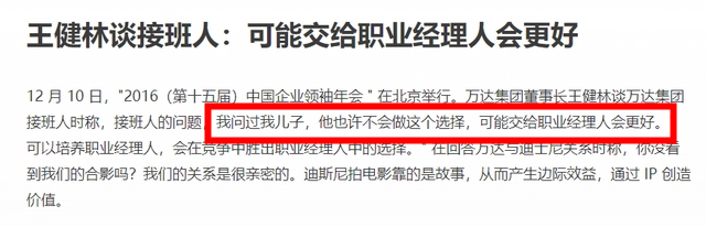 不过,王思聪自己倒是没有兴趣接老父亲的班,所以在此前的采访中,王健林称万达“交给职业经理人可能会更好”。