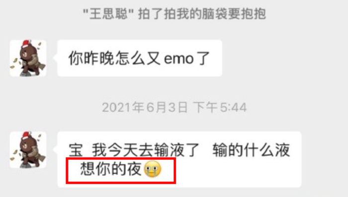 “小肉安”在社交平台上分享的聊天截图显示,两人用的是可可爱爱的动漫情侣头像,王思聪主动提出“这个情头很有意思”。