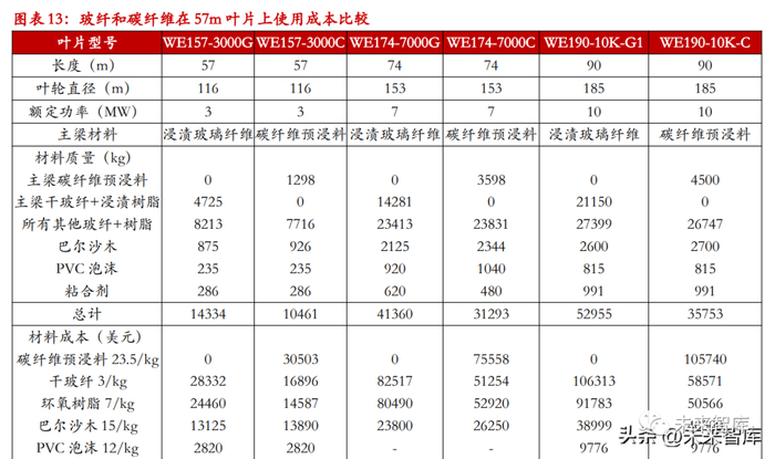 3.1.2、碳纤维替代给叶片带来成本增加