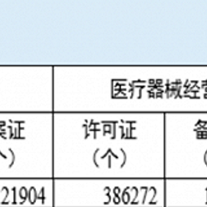 1月11日,国家药品监督管理局公布了各省医疗器械许可备案相关信息(截至2022年12月31日)。其中显示,境内医疗器械产品注册证为100101个,备案证137822个。