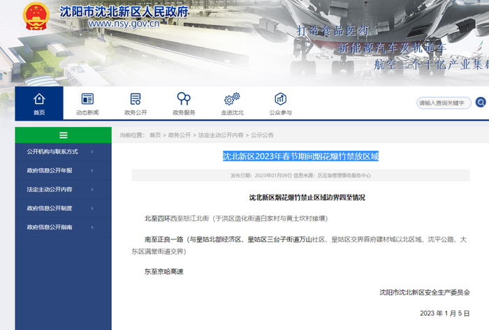 沈北新区烟花爆竹禁止区域边界四至情况