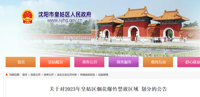 皇姑区烟花爆竹禁放区域划分的公告
