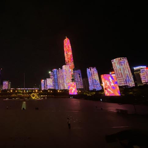 非节假日播放安排为:每周日—周四时间,播放基础模式版本,播放时间视版本情况而定。近期为全程营造热烈的节日氛围,采用可连续循环播放的天际线版本,该模式通过LED点光源律动和交替变化营造简约及富于节奏感的光影变化来打造深圳独特的都市天际线,近期播放时间为每天19:00-22:00。