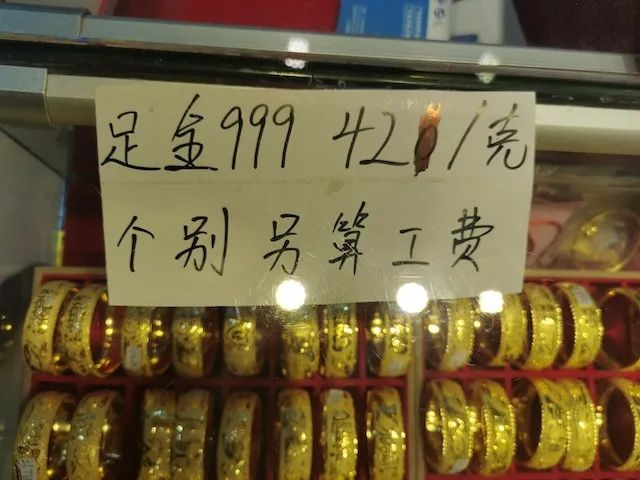 记者注意到,当日广州大罗塘珠宝城足金999价格为420元至421元/克,足金9999价格为425元至426元/克,有商家还推出了足金9999优惠5元/克的优惠活动,相当于与足金999价格一致,吸引来了不少顾客。