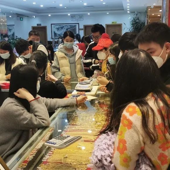 据记者观察,年轻人已成为年底大罗塘黄金消费的主力军。来买黄金对戒的情侣、为孩子添金的一家三口、为父母及自己购买黄金饰品的年轻人挤满了柜台,后排的顾客甚至需踮脚探头才能看得清晰,导购更是忙得不可开交。