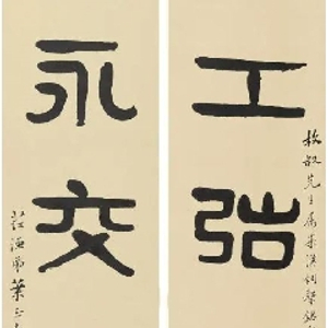 汉代以后,大凡写篆书者,必先研究语言文字之学,如曾自诩“斯翁之后,直至小生”的李阳冰颇能“洞于字学,古今通文”。清代金石考据学的兴起,使写篆有了方便条件,尤其是1899年之后研究甲骨文成为一门显学,这不仅大大促进了文字学研究,也为书法创作提供了绝好体势。最先将甲骨文作为一种书法艺术来对待的应是罗振玉,他在研究之余首先集甲骨文字写成楹联,后以《集殷墟文字楹联》为书名付印。