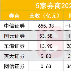 对比上述两家上市券商2022年三季报业绩增速来看,2022年第四季度,中信证券降速较大,国元则较小。