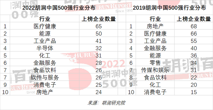 “疫情这三年,胡润中国500强企业发生巨大变化,都有50%三年前的中国500强企业已经被淘汰。企业必须要聚焦价值创造,才能在经济结构调整和产业升级中立于不败之地。与2019年的榜单相比,医疗健康行业比较稳健,能源、半导体行业上升较快,房地产从第一名降至第十名,零售、传媒娱乐从第六、第七名降至十名以外。”
