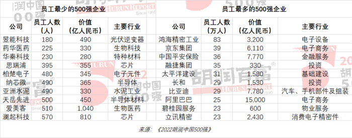 《2022胡润中国500强》列出中国500强非国有企业,按照企业市值或估值进行排名。上市公司市值按照2022年11月15日的收盘价计算,非上市公司估值参考同行业上市公司或根据最新一轮融资情况进行估算。