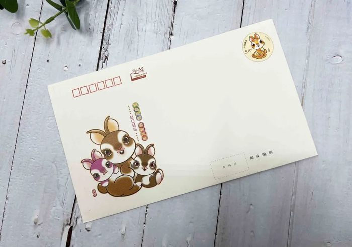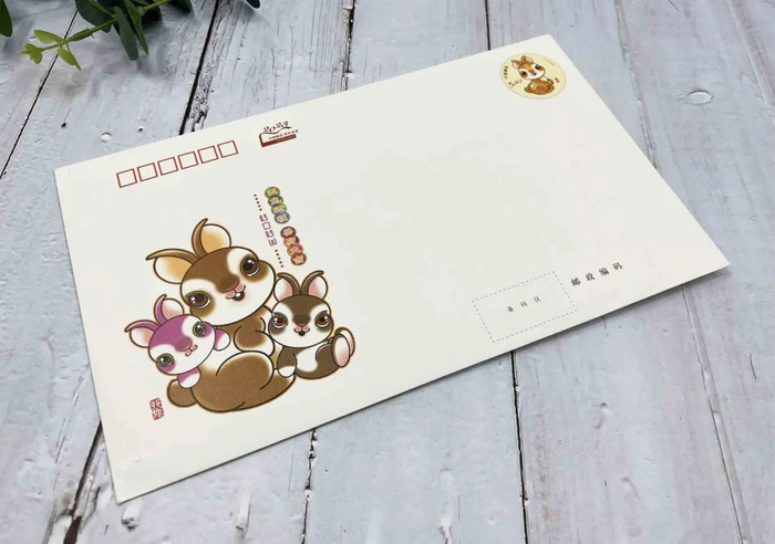 另外赠送的2023年兔年首日封,是两只小兔挤在兔妈妈身边的温馨场景,它们乖巧喜人,目光灼灼,寄托了平安顺遂、祥和富足的美好愿望。