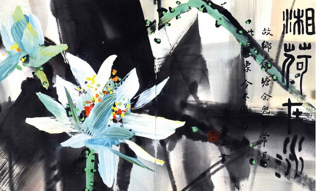 80年代,他的单幅作品《湘荷在水镜心》,拍价已达到483万。