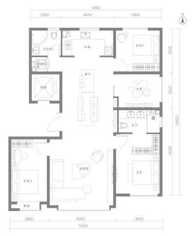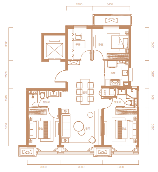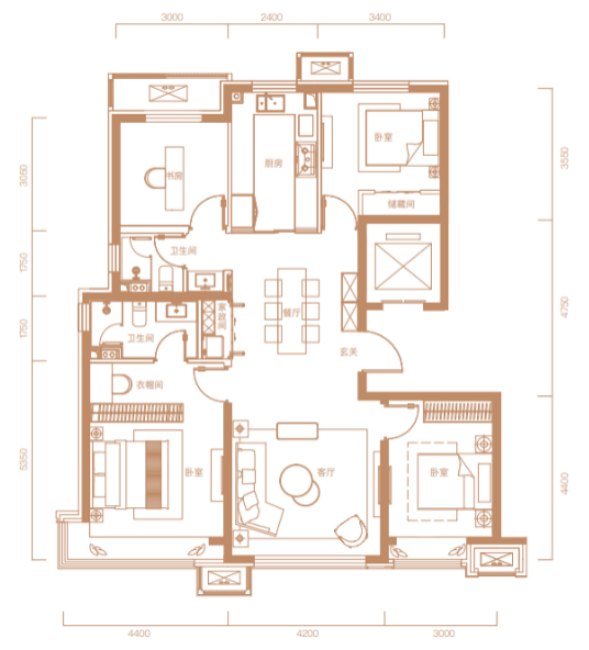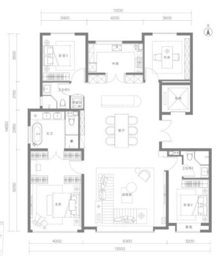 图:200㎡四室两厅三卫户型