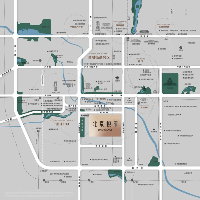 【区位】北京悦府,地处北京二环右安门前,可快速抵达天安门、金融街、丽泽商务区等核心区域。从项目出发约700米可抵达14号线西铁营站,约1公里可抵达14号线与19号线换乘站景风门站,同时项目临近地铁4号线及10号线,尽享出行便利。