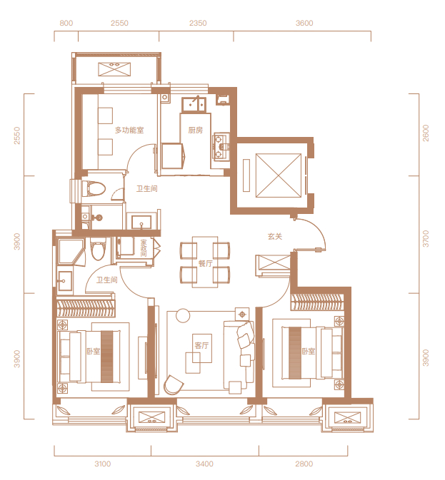 图:134㎡三室两厅两卫户型
