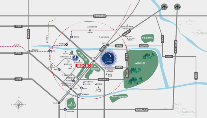 【区位】绿城晓风印月项目占位于北京第二CBD——望京,同时依托百万平米黑桥公园、望京公园、大望京公园、将府公园等自然盛景,与草场地、798艺术区、博物馆等人文氛围,围合成城市CBD不可复制的人文绿洲。项目坐拥“三横三纵双轨道”的立体路网,让出行更加便捷从容;周边五大商圈、多家权威医院、多所中外学府环绕,演绎全新的生活方式。