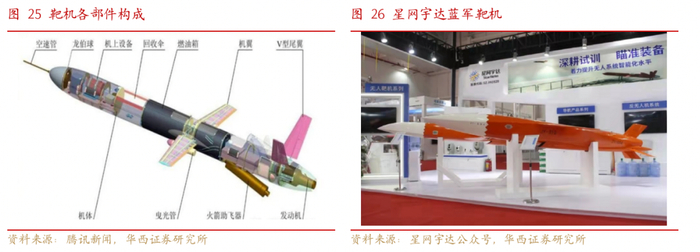 公司无人靶机除发动机外各部件均自研自产,技术优势有望推动产品谱系延伸至各类无人机。公司当前无人机产品主要是军用无人靶机,除发动机之外均为自研部件,是国内少有的产品从核心部件到任务设备直至无人平台的全产业链无人系统公司,且目前公司已做出了自主研制专用发动机的计划,已经完成方案论证,后续随着研发的开展将逐步选用自研产品。依托公司的自主研发能力和多年的惯性技术优势,无人机产品谱系未来同样有望拓展至巡飞弹、空射诱饵、箱式蜂群无人靶机等装备产品。