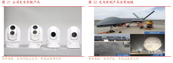 公司光电、雷达技术成熟,已广泛用于军民领域。光电吊舱基于公司惯性测量和动基座稳控优势,将激光、红外、相机等产品相结合,作为移动平台的上装设备,可完成侦察、探测等任务。公司的相控雷达采用了相控阵技术,主要用于安防和反无人机领域,具有小型化、全固态、低成本等特点。相控雷达与光电吊舱结合,在雷达引导下可实现对移动目标的探测和识别,相关产品已在军用领域已用于无人机和反无人系统等,民用领域已成为海康、大华等公司的合格供方。