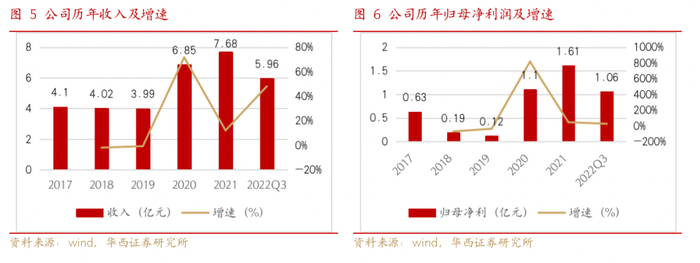 2020年公司业绩大幅增长,22年有望实现股权激励目标。公司2017-2019年营收较为稳定,净利润逐年下滑。2020年由于无人系统板块布局多年迎来了放量,公司业绩也迎来了拐点,当年收入6.85亿元,较上年同比增长71.68%,归母净利1.10亿元,较上年同比增长816.67%,2021年公司继续深耕无人系统板块的同时,卫星通信和信息感知板块也实现较高增长,公司整体实现收入7.68亿元(+12.12%),归母净利1.61亿元(+46.36%),利润增速远高于收入增速,规模效应带动下,盈利能力显著提升。2022年前三季度实现营收5.96亿元(+48.10%),归母净利润1.06亿元(27.08%),公司22年业绩预告表示,全年归母净利润2.08亿元-2.3亿元,同比增长29.14%-42.80%,预计能够实现股权激励目标。