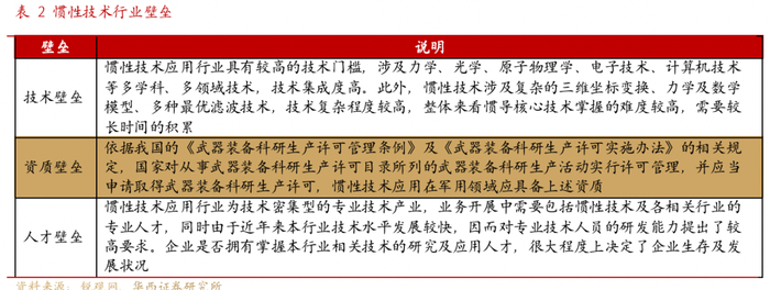 惯性技术难度大,存在较高壁垒。高精度惯性器件及系统是惯性技术发展的一个重要方向,也代表着惯性技术发展的最高水平。作为新兴的高新技术行业,惯性技术应用行业具有较高的技术门槛,涉及力学、光学、原子物理学、电子技术、计算机技术等多学科、多领域技术,技术集成度高,具有较高的技术壁垒。在军用领域,国家对从事武器装备科研生产许可目录所列的武器装备科研生产活动实行许可管理,并应当申请取得武器装备科研生产许可,存在较高资质壁垒。