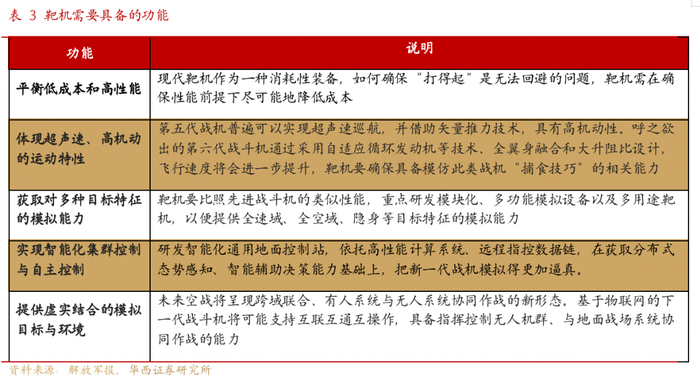战机升级换代对靶机性能提出更高要求。靶机要想扮演好对手威胁目标的角色,必须形似加神似。“形似”,即由雷达、红外探测设备所呈现的外形尺寸、姿态、机动等特性,要与威胁目标相近;“神似”,指隐身性能、光电对抗能力、空域范围、战术运用等特性,要与对手威胁目标相匹配。