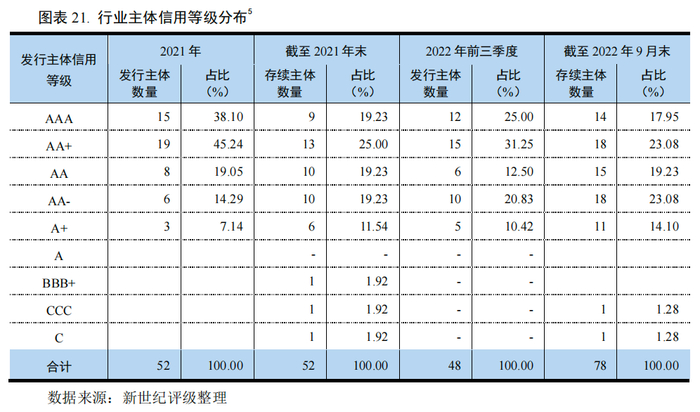 [3] 本部分主体信用等级均仅考虑发行人付费模式的评级机构的评级结果,即不考虑中债资信的评级结果。统计主体等级分布时剔除了重复主体,即单一主体发行多期债券时只按该主体最新信用等级计一次。此外,本报告发债企业样本剔除了化肥板块企业,化肥企业信用等级分布及级别迁移情况请参见《新世纪化肥行业研究报告》。
